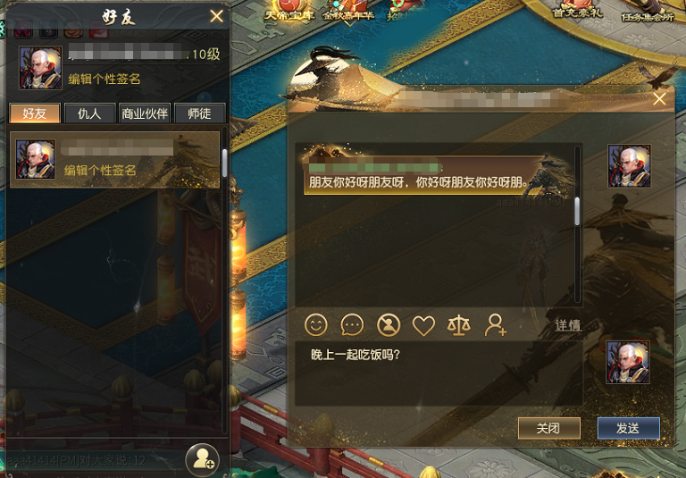侠骨豪情私聊框和气泡框效果示意图