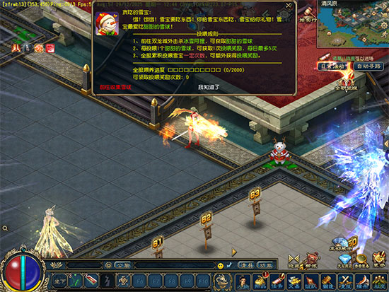 喜迎圣诞,贪吃的雪宝降临双龙城,记得收集甜甜的雪球将它投喂,便会得到雪宝的赠礼!