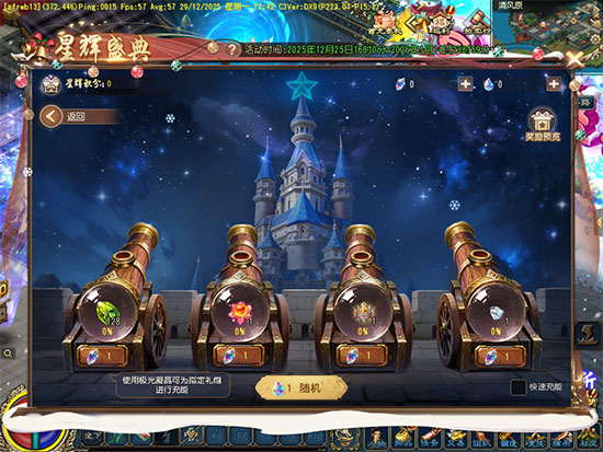 少侠可使用极光凝晶或极光凝露(该道具可通过寻找星辉获取),对礼炮进行充能,每次充能都可获得基础奖励,更有机会收获额外充能奖励!