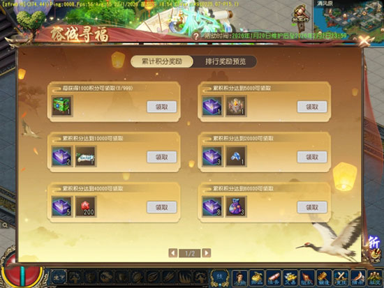 1、累积积分达到20000,才可荣登全服/单服榕城寻福排行榜。