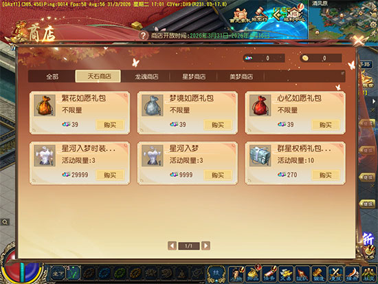 星梦商店也将限时开放,侠士可在此购买各类珍品!