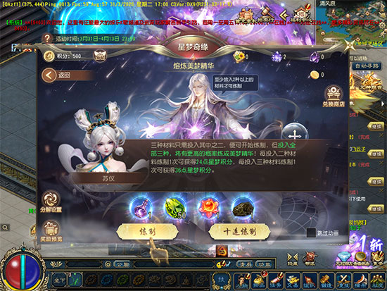 注:侠士可选择勾选将炼制获得的部分奖励自动转化为星梦金币,在活动商店中兑换好礼。