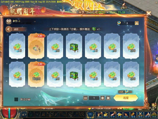 180天周年庆击败特效云川竞渡·破浪*1、10阶龙魂*1、天祈宝箓*30、5天时效1亿爵位勋章(赠)*8 |