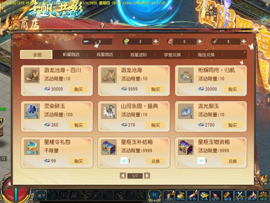 海港商店限时开放,侠士可在此购买各类珍品,亦可使用星枢玉兑换限时专属礼品。