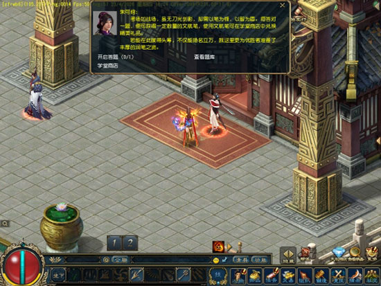 学习船政知识,参与学堂答题。少侠可前往朱可绾处参与复兴学堂答题活动,每答对一题,便可获得一定数量的文航笔,使用文航笔可在学堂商店中兑换精美礼品。若能荣登当日学霸榜,更有丰厚的奖励。
