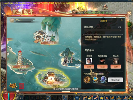 活动期间,少侠可在帆耀周年地图内,结交江湖好友,招募远航伙伴,收集书籍珍品,满足每个航道的开拓条件,即可开启新航道的征途!