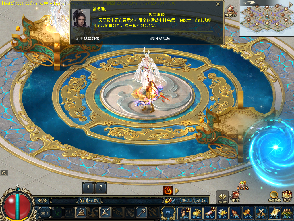 活动期间,少侠亦可通过天穹传送阵前往天穹殿,完成每日巡礼,即可领取巡礼奖励!